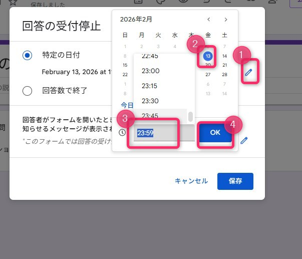 わざわざ手動で「回答の受付」をオフにする必要がなくなりました。設定タブから以下の2つの条件で自動停止をかけられます。