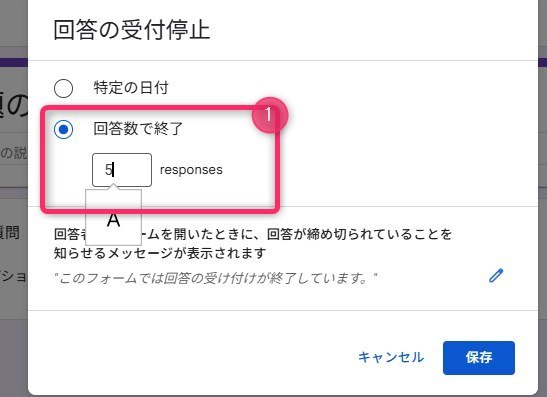 ①「回答数で終了」をチェックし回答数を入力します。