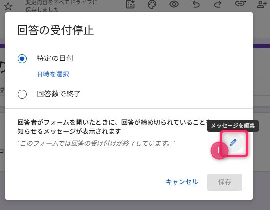 設定タブにある「回答の受付を終了した際のメッセージ」を、自分の言葉で事前に書き換えておきましょう。